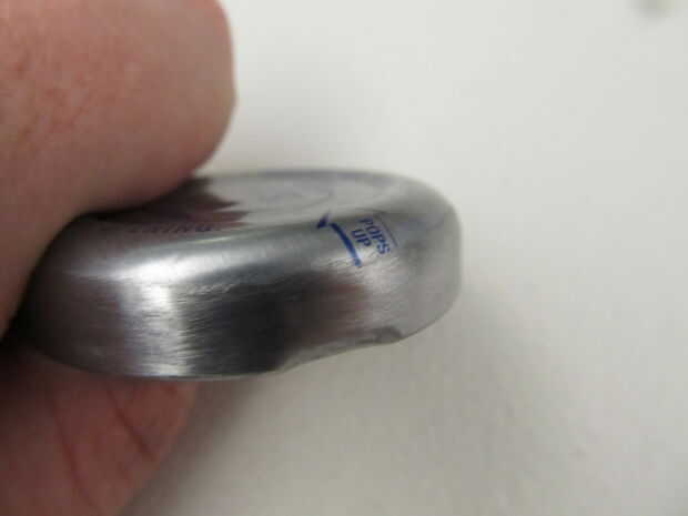 Incluso tapones de botellas como los casquillos de Snapple estoy usando tienen una fina capa de pintura clara para evitar la oxidación. Revisa la segunda foto en este paso. ¿Puede ver cómo el área que arena es un poco más oscuro? Vas a querer la arena hasta que todo el borde es lijar muy bien como esta. Te recomiendo levantar un video en YouTube y pasar algún tiempo lijar cuidadosamente.