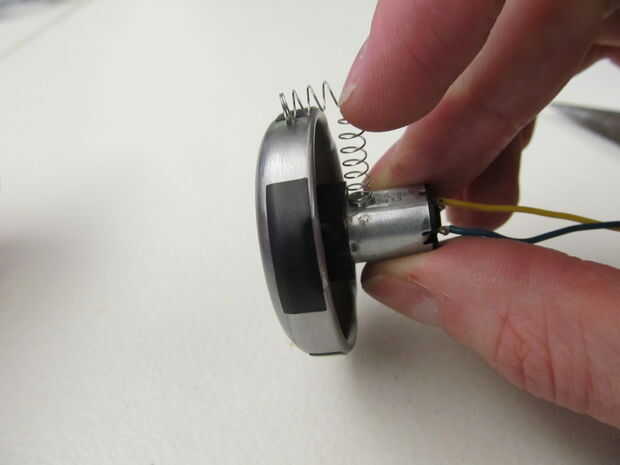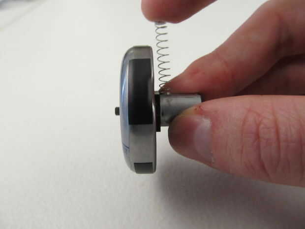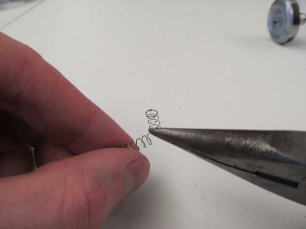 (Me gustaría señalar que en la primera foto en este paso, yo estoy realmente no comprimir el resorte con mi dedo. Sólo mantengo lo para que pueda obtener una buena vista de la primavera en relación a la rueda.)