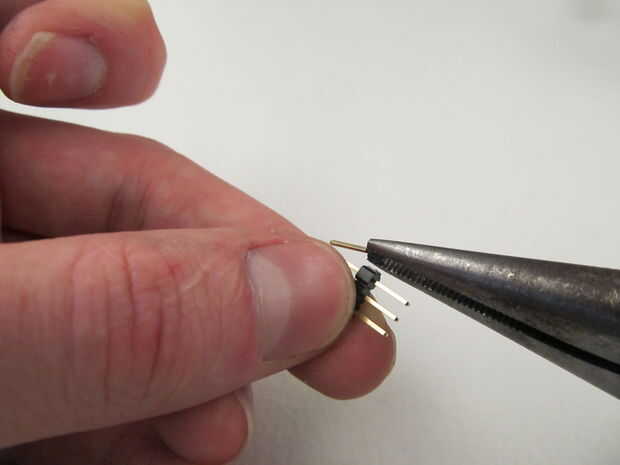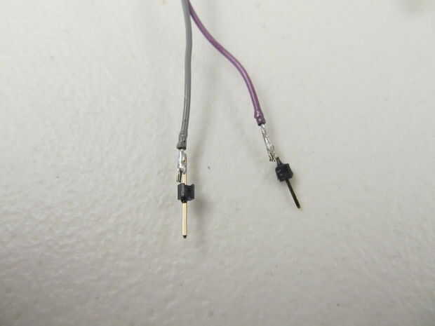 Si los tienes, también puede utilizar esto como un momento para soldar pernos de encabezado en el otro extremo de los cables. Necesitaba hacerlo porque estaba usando cables trenzados que eran demasiado gruesos para caber perfectamente en mi protoboard.