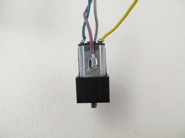 Por último, otro de mis dos cables pegué directamente en la caja de metal de mi motor. Esto es importante, porque el caso motor está conectado eléctricamente con el eje metálico, que también se conectará a nuestra rueda del metal! Al mismo tiempo, la rueda, eje y caja están aisladas eléctricamente del funcionamiento interno del motor. Esto significa que nuestro caso motor nos da una conexión fija y constante a nuestra rueda del metal!