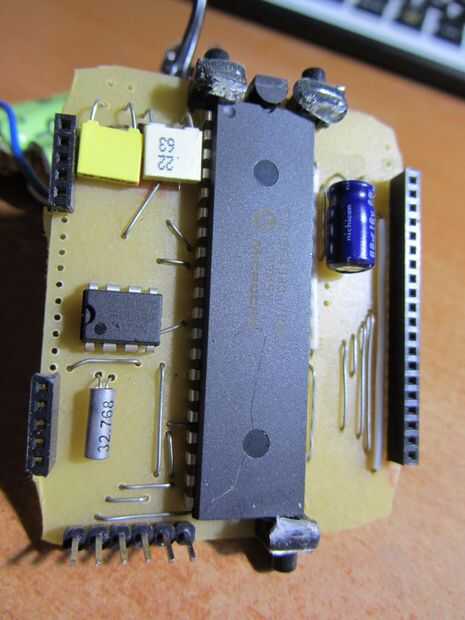 El circuito esquemático está por encima con la disposición del PWB he diseñado y usado para él. Esto debe ser en el espacio aconfined por lo que he intentado hacer tan pequeño como sea posible mientras que yo quería que se assembleable a mano sin herramientas especiales. Por lo que hay componentes smd donde sea necesario y algunos más. No voy a entrar en soldar un circuito paso a paso ya que hay muchos instructables sobre este tema.