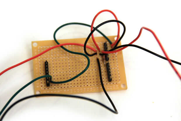 Conecte el cable rojo a 5V de Arduino, al otro lado de la resistencia a tierra y el cable verde a D2.