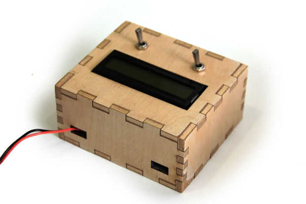 Fijar los interruptores en la caja con tuercas. Pegue o atornille la pantalla lcd en la parte inferior del panel frontal. El Arduino y Protoboard como la batería en la caja y asegure con pegamento o velcro. Atornille o fije la caja cerrada.