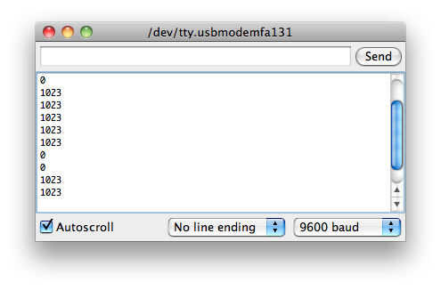 Utilice el código siguiente para probar el interruptor de láminas. Cuando el imán en la rueda se mueve más allá del interruptor, el arduino debe imprimir ~ 1023, de lo contrario se imprimirá ~ 0. Abra el serial monitor (Herramientas >> Serial Monitor) en el IDE de Arduino para probar su propia configuración. Si el imán no parece estar afectando el interruptor reed, intente volviéndolo o incluso agregar un imán más fuerte si usted tiene uno.