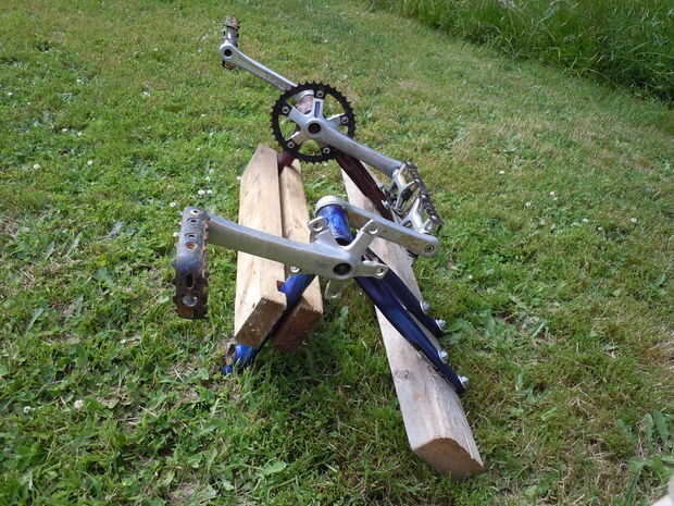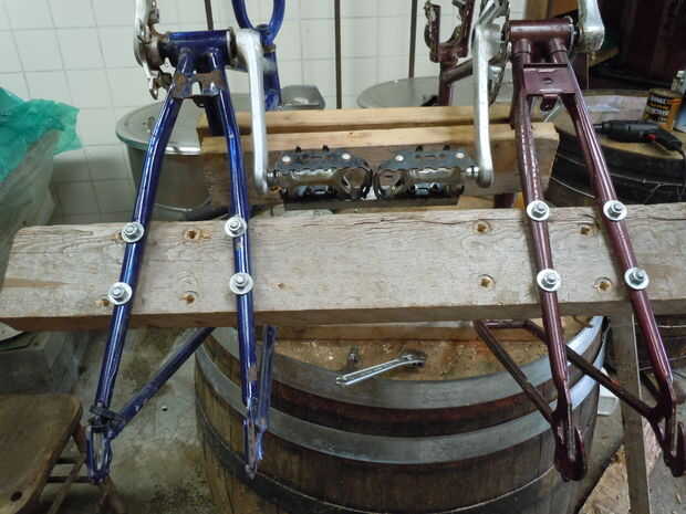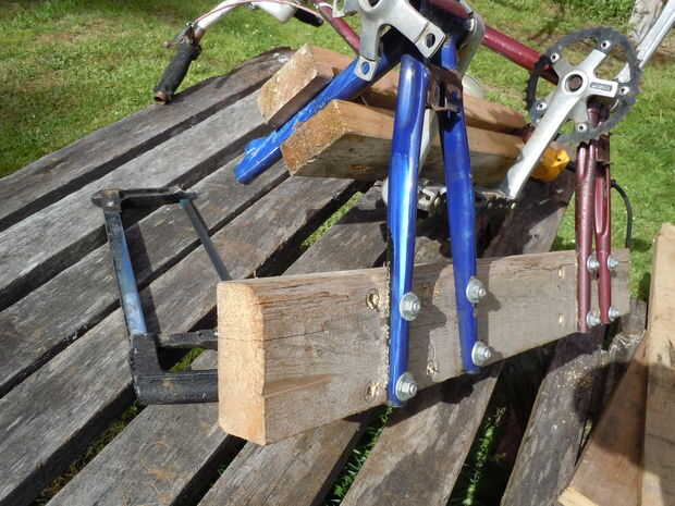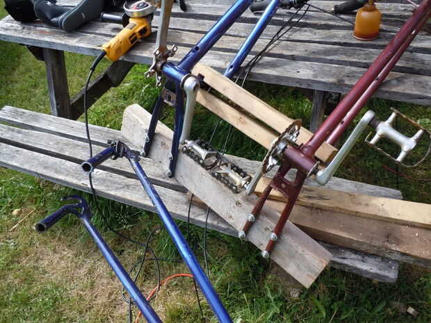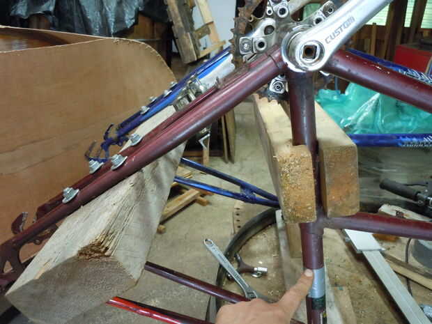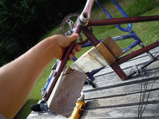 Con los soportes inferiores como alineado como van a conseguir. He bloqueado todo en su lugar y cortan el resto de los marcos de la bici.