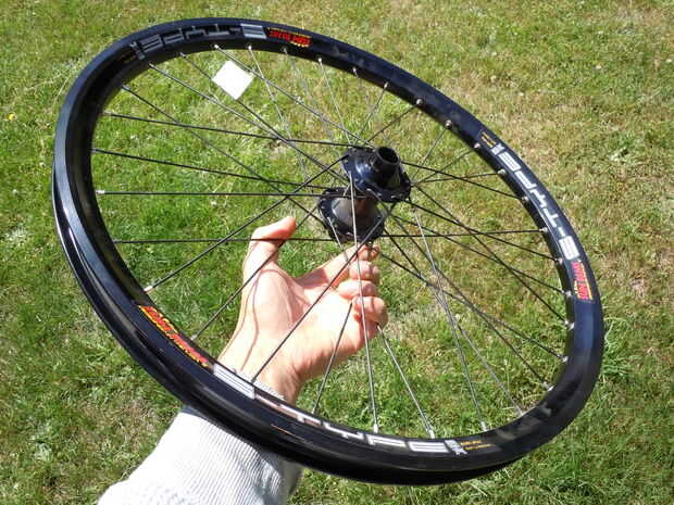 Era difícil encontrar las piezas para hacer una rueda de 20" con un montaje de disco. Quería que ruedas más pequeñas para soportar las cargas laterales. 1JohnFoster utiliza ruedas de 26" sin incidentes pero quería pecar de cauteloso. También amablemente me dio algunas partes incluyendo cubos grandes que probablemente hará su camino en un recumbent trike en algún momento.