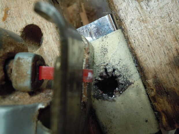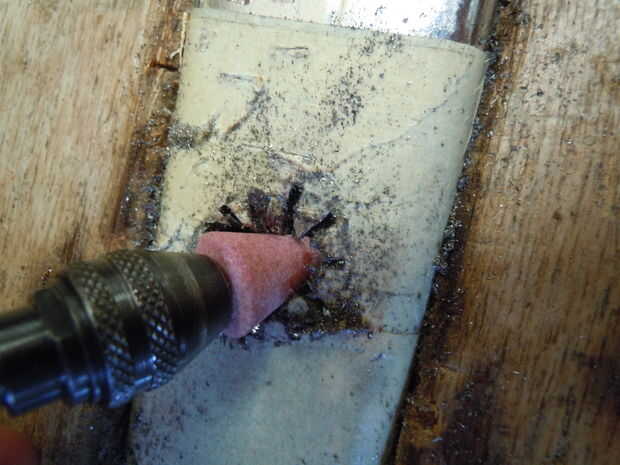 Tuve que acuñe los choques con un poco de alambre de acero suave aplanado por lo que encajaría perfectamente.