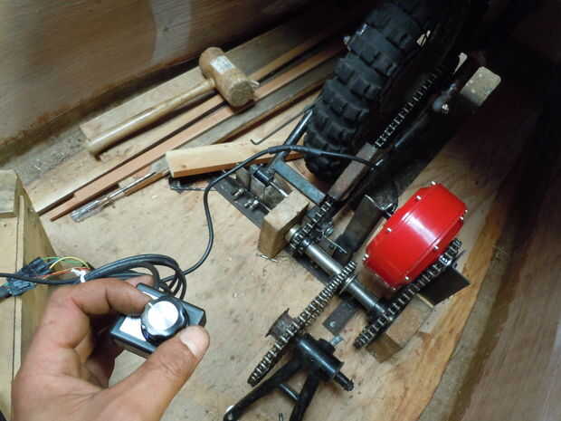 I'm starting with a ~400 watt motor geared down for cranking up hill. Es más barato, menos arriesgado comenzar.