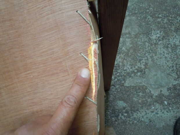 También el problema se originó probablemente de un problema de alineación o tensión leve que creo que yo también corregido por cortar y restablecer la costura superior justo detrás de la silla... suerte.