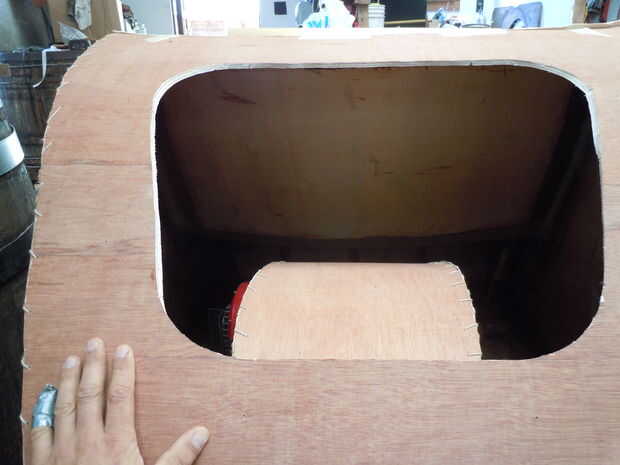Podría haber sido más fácil poner en antes del wheelwell. Así que hubiera podido pegar en el respaldo del asiento por alcanzar a través del agujero de la rueda trasera de debajo el coche. Ahora tengo que cortar el tronco primero por lo que puedo acceder a detrás del asiento.