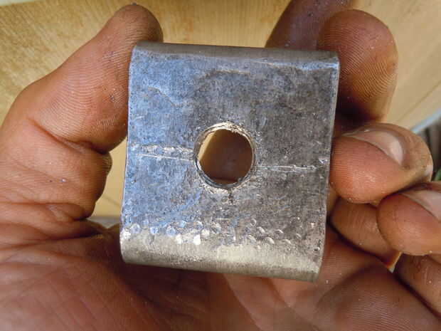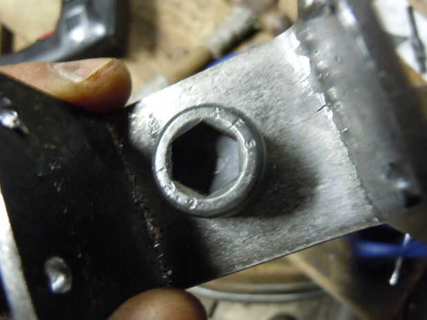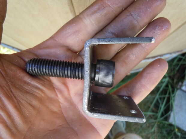 Pensé en usar un tapón de aluminio para montar para arriba en la parte inferior de la costilla que luego pude hilo de rosca para aceptar un perno pero preocupa que tal perno podría mover hacia fuera ya que está algo escondida. En lugar de otro hizo y adjunto un soporte en forma de U y rosca a esto por lo que podía atornillar un tornillo desde dentro tal que nunca podría caer hacia fuera.