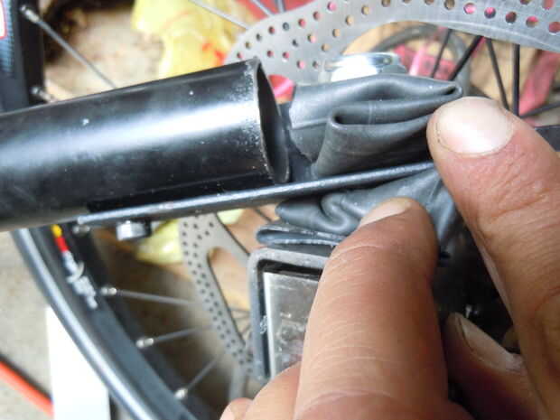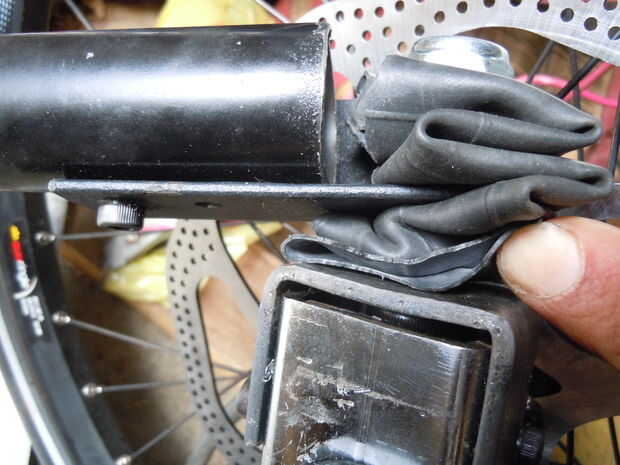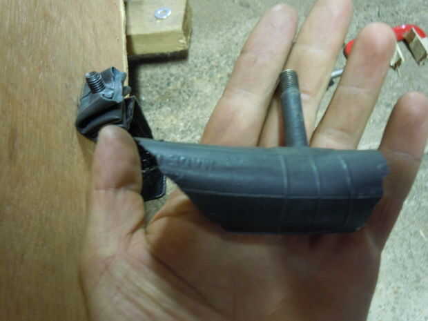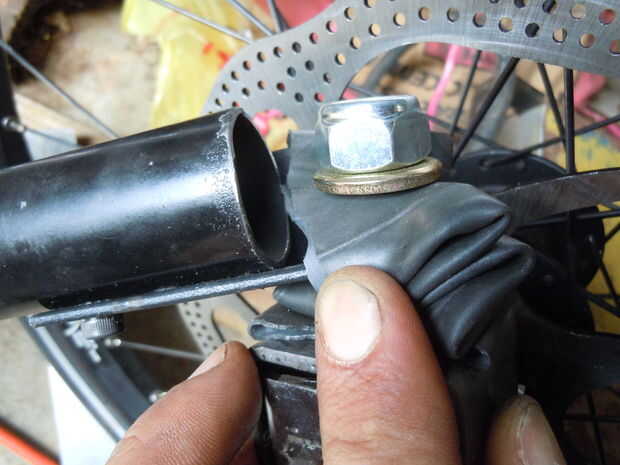 Here it is. Usé la bicicleta llanta como un buje de goma.