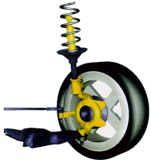Suspensión MacPherson es más común en los coches. Pocas piezas, fáciles de trabajar, más barato.