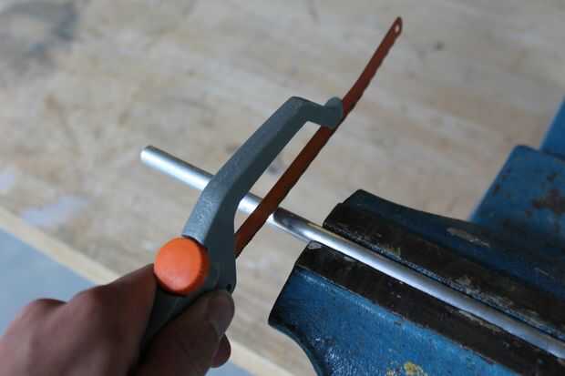 Si sabes cuánto debe ser el tubo, puede ver el tubo a la longitud correcta con una sierra para metales. Sujetar en un tornillo de banco para que usted fácilmente puede vio a través del aluminio.