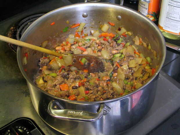 Descarga en 2-3 latas de frijoles. He utilizado negro y pinto para este Chile.