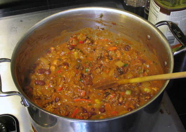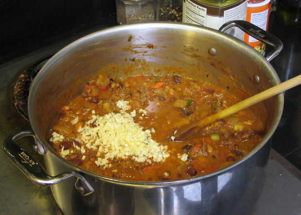 Añadir un puñado grande de ajo picado, un montón de polvo de Chile y algunos orégano y cocer a fuego lento por un tiempo para cocinar el agua de tomate extra. Supervise y remueva cuando sea necesario.