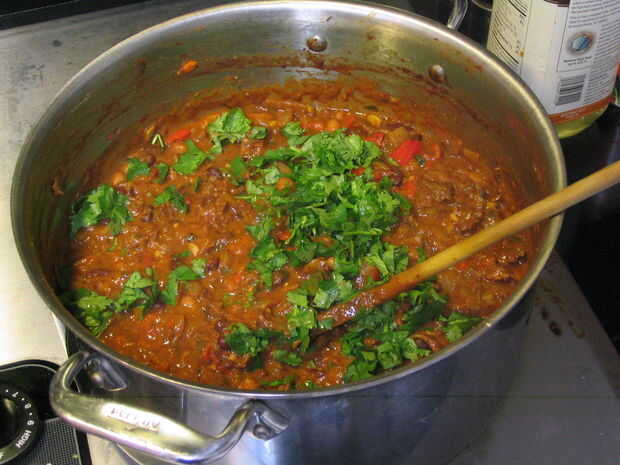 Cuando esté cocinado abajo sufficienty, añadir un puñado grande de cilantro picado.