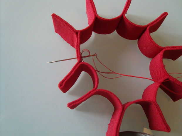 Cuando hay suficientes parches, puede coser los extremos juntos.