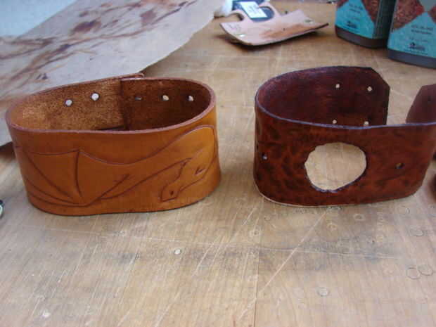 Recomiendo aplicar aceite del Neatsfoot, ayuda a sellar y proteger la piel. Oscurece el cuero ligeramente, puede renunciar a morir a favor de un acabado al aceite.