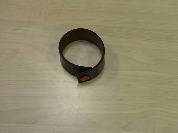 un pedazo de cordón de cuero, tuve algunos ya en la casa, hacer un lazo, nudo deslizante en el agujero junto al cuerpo del reloj, tirar aunque cierre para obtener la longitud y corte un poco larga. Elástica puede ser beneficioso, pero esto se mantien