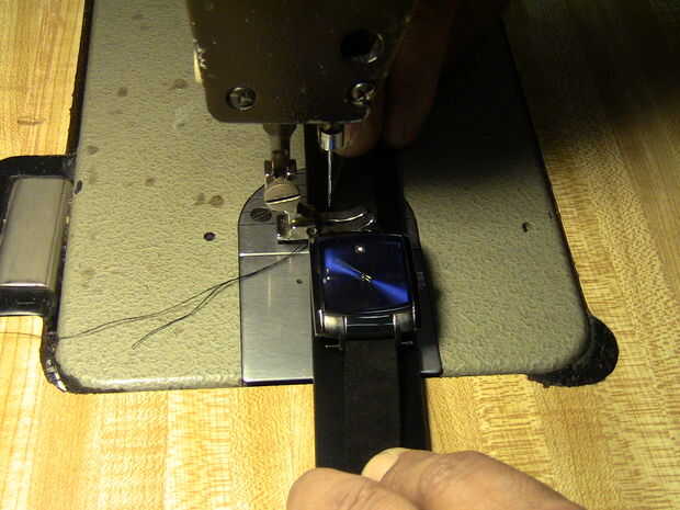 Hacer la primera puntada bastante cerca del reloj real sí mismo. Asegúrese de que su puntada comienza antes de la gamuza y termina un poco después. Repetir el mismo proceso en el otro lado, pero asegúrese de que dejar una pequeña sala de meneo. Si haces demasiado apretado su puntada enganchará cuando vayas a ponerlo alrededor de su muñeca.