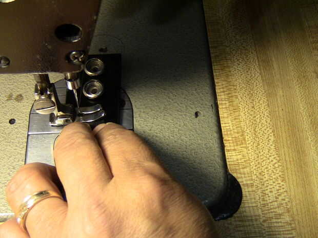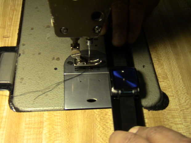 Ahora vamos a hacer la puntada final en la parte inferior de la gamuza. Como con las puntadas anteriores Asegúrese de empezar un poco antes y final ligeramente después de la gamuza. Dejar margen de maniobra, es una molestia cuando tienes que empezar completamente debido a una banda de rotos.