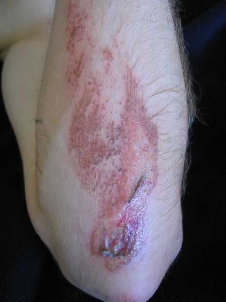 Esta lesión fue vestida con un adecuado botiquín de primeros auxilios en el lugar de los hechos, así las desagradables marcas en cinta en el interior del brazo. Después del retiro de cinta dolorosa en la ducha a la mañana siguiente, decidimos sacar el calcetín.