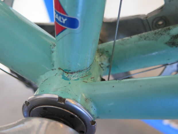 Hace aproximadamente un año compré el marco de la bici de mis sueños, sólo para darse cuenta más tarde que tenía una pequeña grieta donde el tubo del asiento se une con el pedalier. El chico que vende me cubre la grieta con esmalte de uñas y me dijo que era sólo un pequeño chip en la pintura que cubría para evitar la oxidación. Fui engañado y estafado, pero por suerte pude (con la ayuda de amigos) reparar los daños.