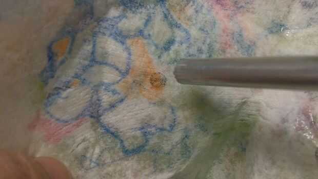 Deje el papel maché capa secar bien. Retire el molde de papel. Perfore los agujeros para los ojos en este momento antes de continuar. He utilizado un tubo de aluminio metal que teethed en la punta. Tendrás dos agujeros clara sin molestando.