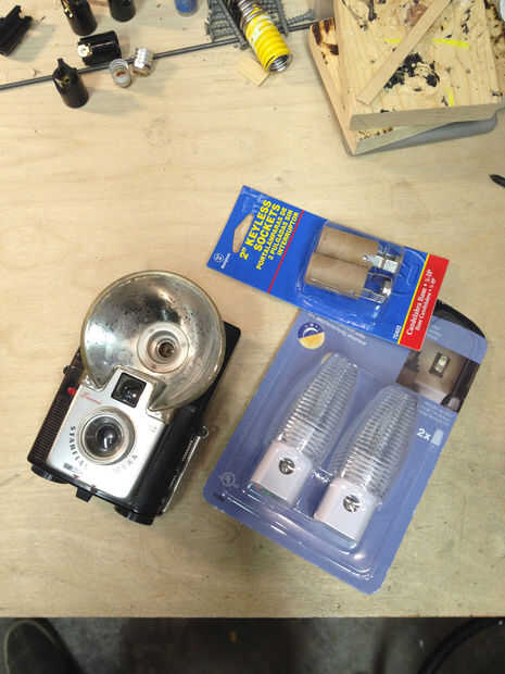 no todas las cámaras de trabajo para este instructable. Cuando haya terminado, la cámara será colgar desde el receptáculo de tan el peso más ligero de la cámara, mejor. también yo estoy teniendo en cuenta cuánto de la cámara sobresaldrán de la pared, así como facilidad de desmontaje y montaje, espacio para el zócalo de lámpara, etc..