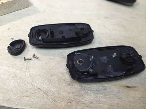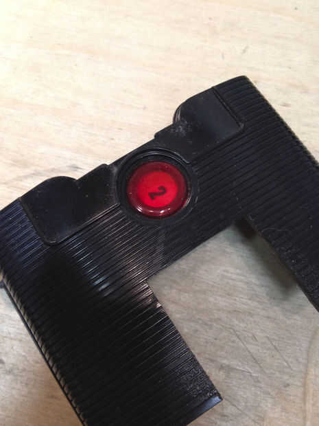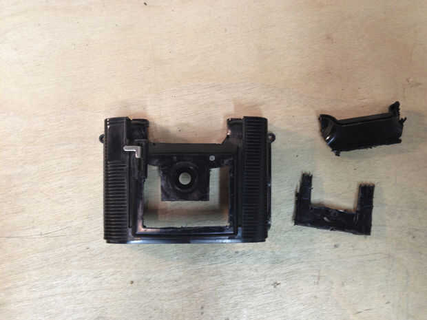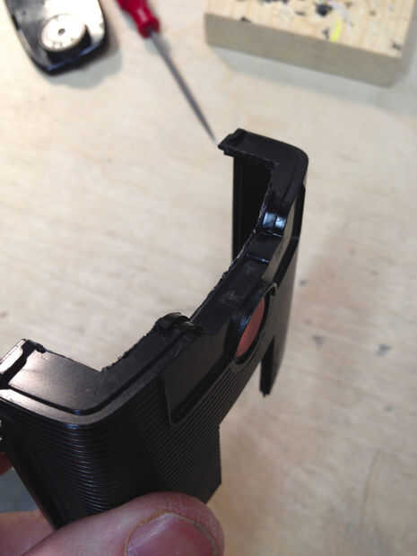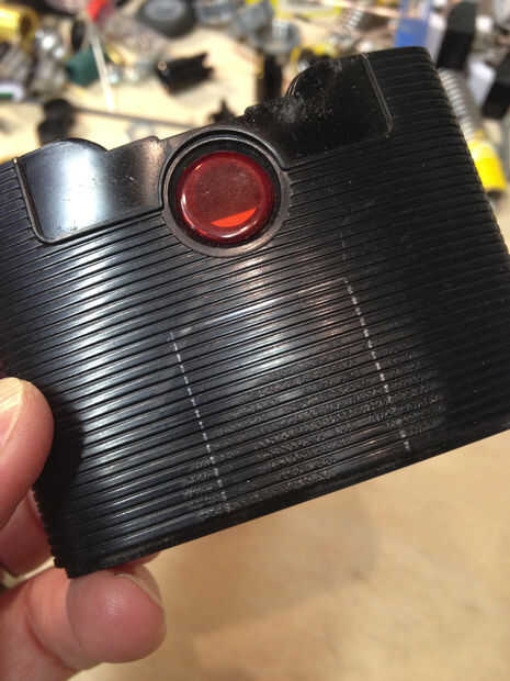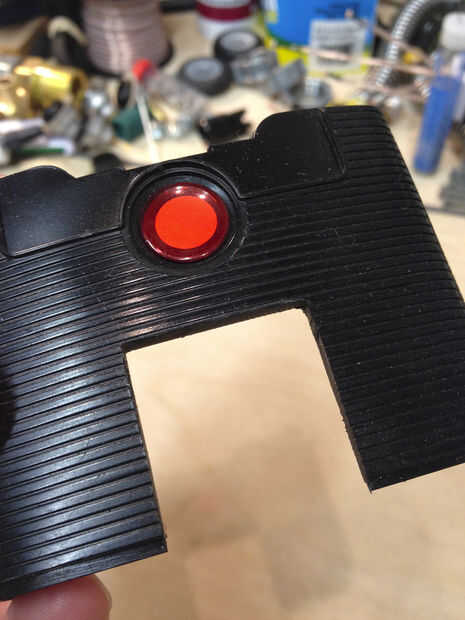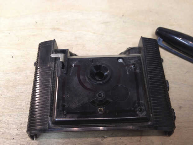 en la parte trasera, usar la luz nocturna como una plantilla, marcando donde quiero que se encuentra. quitar esto así como algunos de la parte superior para permitir el acceso de cable. Cuando corte la ranura para la luz nocturna, me corte apenas tímido de la línea luego utilice una lima o papel de lija para afinar por lo que no tengo abierta agujeros alrededor de la clavija. también es un buen momento para añadir algo para cubrir la ventana del contador de película. Yo uso un trozo de película de papel pero puede usar lo que quieras para que sea personal. ¿tal vez una poco imagen de usted o de su empanada del sweetie?