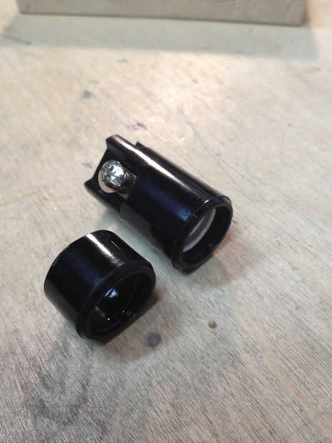 una vez que tienes que encajar, necesitará juntar las dos piezas. utilizar un destornillador de cabeza plana de la curva la carcasa de aluminio alrededor de la toma y luego usar un punzón para meter unos cuantos agujeros en ambas piezas. Esto debe mantenerlos juntos, pero también a añadir más adelante algunos pegamento.