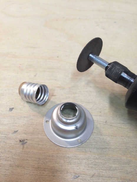 siguiente paso es cortar un poco (la cantidad depende de hasta qué punto la toma de enfermos fuera de la carcasa de aluminio.) de la caja de enchufe de plástico. Yo uso la dremel pero también se puede utilizar una sierra pequeña. luego pegue en el lugar.