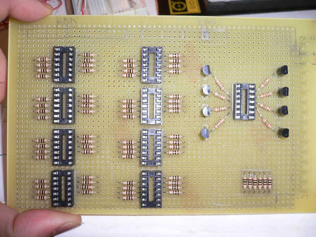 A questo punto armatevi di mooooooolta pazienza ed effettuate i collegamenti tra i vari componenti principali. En las Naciones Unidas secondo tempo ogni collegate resistenza/transistor ai connettori por il o al cubo. Segnate su di un foglio tutte le corrispondenze USCITE cambio Registro--> PIN CONNETTORI, saranno indispensabili quando andremo a saldare i vari fili di o ad ogni terminale del cubo.