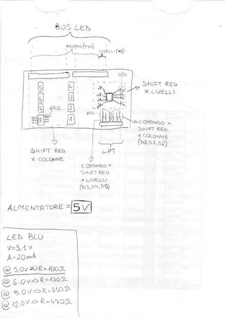 -shift 8 registro de 8 bits (de 64 bits tot.) attivano/disattivano ogni singola colonna del cubo
