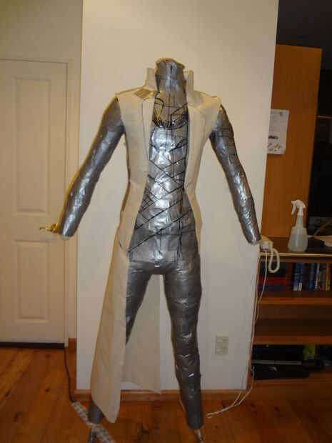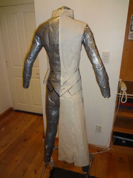 Para hacer su patrón, todo lo que ha hecho es una lámina de material se coloca sobre los cuartos delanteros y traseros del maniquí, a partir de ahí simplemente doblar y recortar la parte posterior de material hasta que alinee donde quiera sus márgenes para cumplir.