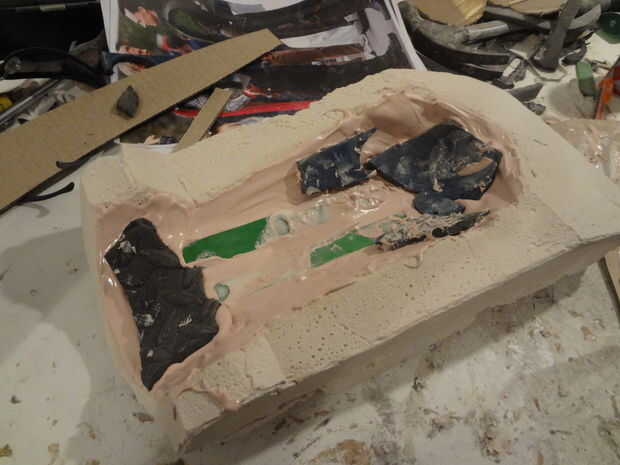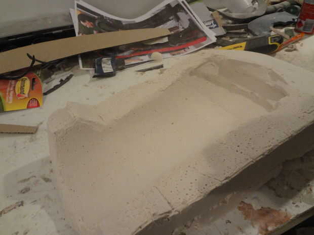 Haciendo la forma de su núcleo de espuma, luego cubriendo en pantano de constructores.