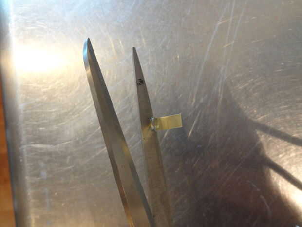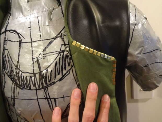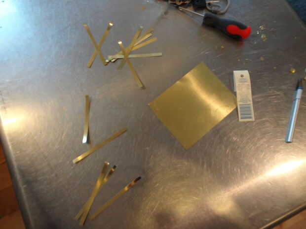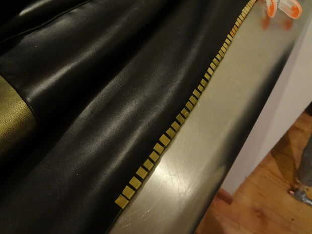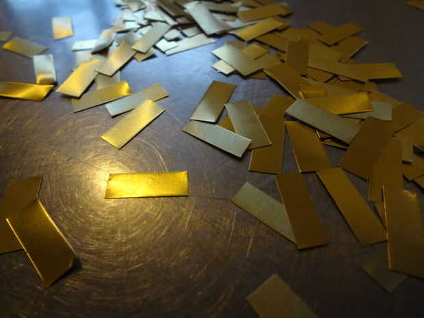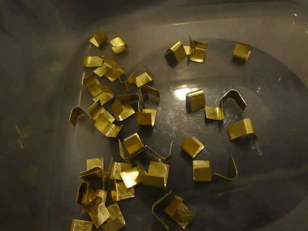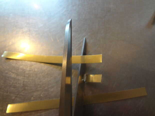 Esta parte es una mierda más que cualquier otra parte del traje, tomé chapa de oro de una tienda de arte vivo cerca y cortan en 5mmx11mm pequeños rectángulos, a partir de ahí, les dobla por la mitad alrededor de una varilla pequeña, aplicó el interior con pegamento y luego doblado para el borde de la capa. Tan simple como eso, sólo lleva para siempre. Hoja de oro