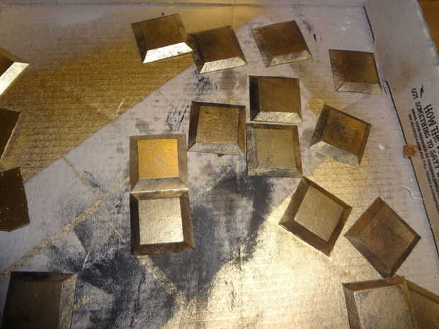 Corte mis paneles, afilado los bordes. aerosol había pintado todo oro metálico y agobiados con un poco de pintura negra.