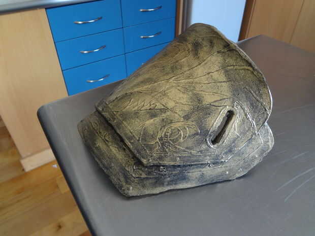 Una vez haya hecho su armadura del hombro al tamaño y forma que desee, puede calentar arma los bordes para dar forma y rizar un poco más, luego darle 2 capas de pva pegamento con un pincel, luego un tercero regado abajo capa para eliminar las marcas del trazo de pincel. Agregar detalles como los guantes, luego pintura y angustia tanto como usted siente que necesita.
