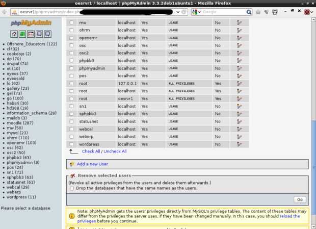 Ir a la parte inferior de la página y haga clic en actualizar privilegios.