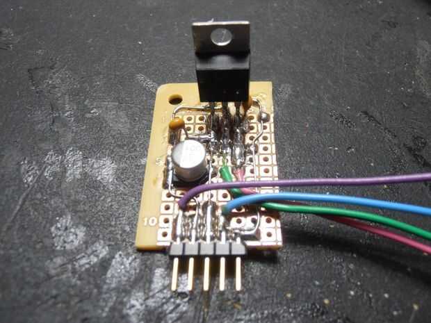 Me sorprendí de que regulador rinky dink puede manejar todo el sistema, pero su no va a sostener el sistema y un NES de la ventaja con su función de LED y turbo. Para conseguir alrededor de esto, he quitado las piezas de regulación de energía, ambos y había formada por un simple circuito de regulador de 7805 poco en algún tablero de perf. También funcionó las líneas de audio y vídeo a esa junta y agrega un encabezado de pin para un cable de AV que apretamientos, estiramientos de lo otros famiclone.