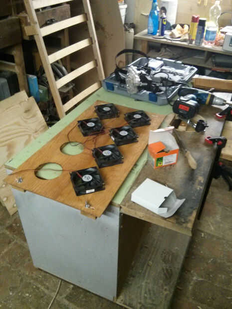 Ahora a instalar todos los fans y conectar en paralelo. En este punto usted tiene que decidir si desea forzar el aire hacia adentro o hacia fuera.