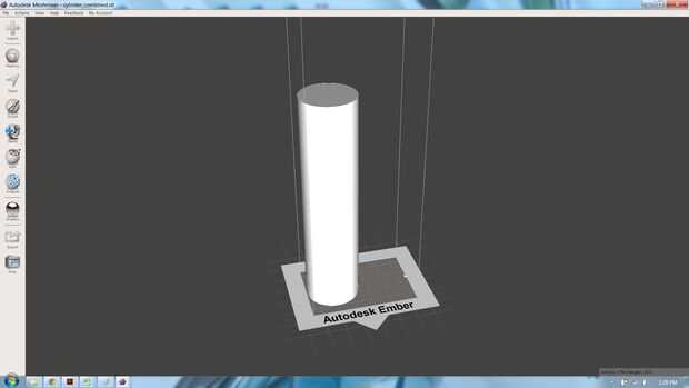 Comencé usando dos estampas para este experimento. El primero es un cilindro de diámetro de 30 mm que se compensa en la mitad del área de impresión dejar intactas. La segunda letra es una serie de puestos de 50, 100, 150, 200, 250, 300, 350, 400 y 450 micrones en ángulos de 90, 60, 45, 30 y 10 grados. Esta impresión de pruebas de la capacidad de la impresora para producir características de delicado colmo cociente de aspecto. Ambos archivos tienen pequeñas características poco fijados apagado al lado para que cuando la máquina de cortar re-centros el .stl, los objetos están todavía fuera del centro. Rodajas en 25 micrones, que el cilindro imprime en 4799 capas. Recomiendo imprimir en algún lugar entre 1000 y 3000. Desempaquetar el tarball y eliminar las capas extras es la manera más rápida de cambiar el número de capas impresas.