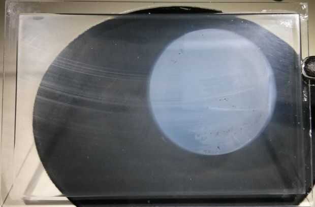 3) áreas donde trozos grandes (~ 1 mm) de PDMS han sido removidas de la superficie. Creo que esto es lo que finalmente "matado" la capacidad de la ventana para imprimir sin interferencia. Cuando éstos aparecieron en 24 K capas el cilindro de 30 mm detenido la impresión. Cuando aparecían en capas de 30 K con la más sólida la impresión otra vez llegó a ser casi imposible. Una vez más, este daño aparece en la promueve los puntos de la impresión desde el punto de rotación. Estas son también las áreas que experimentan la mayor fuerza del proceso de separación.