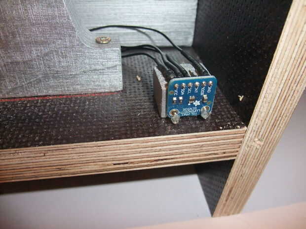 Ahora Atornille o clave el sensor de luminosidad en la Plaza (clavos de 1,2 x 20) con los puntos de soldaduras superposición del borde de la Plaza.