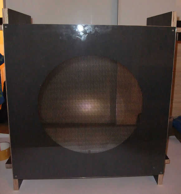 Tornillo de plexiglás y tarjeta negra juntos en la parte delantera del bastidor.