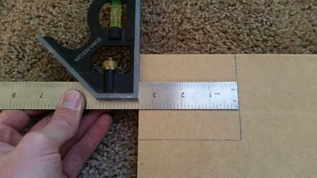 Mide 3 1/2 pulgadas de cada extremo y marcar la profundidad de la repisa de la ventana para hacer un cuadrado (ver figura 4).