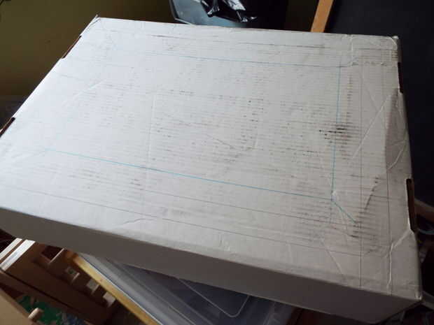 Todavía tenía los 18 x 24 x 6 pulgadas caja de cartón de envío desde cuándo Instructables me envió un lote de cositas para jugar con. Fue una bonita caja resistente y el exterior era blanco en vez del marrón de papel kraft.