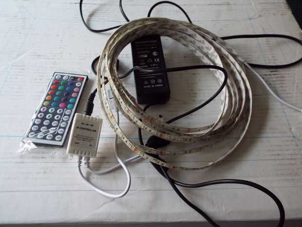 La tira de luz LED era parte de esa tecnología. Lo había utilizado para mi médico quién tiempo grieta en la pared de luz del universo. (Tira RGB LED remota controlada luz, TaoTronics 5050 RGB 300 tira de LED (TT-SL007)) Tiene varios modos de funcionamiento para animar las luces.